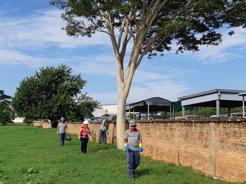 O pátio também estava totalmente limpo, porém, nas proximidades do muro do cemitério que faz divisa com a empresa, muito lixo foi recolhido.